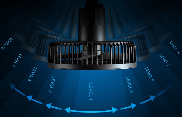 Spider Farmer EC Umluftventilator mit 10 Stufen und 10 Level Regulierung für den Schwenkbereich.